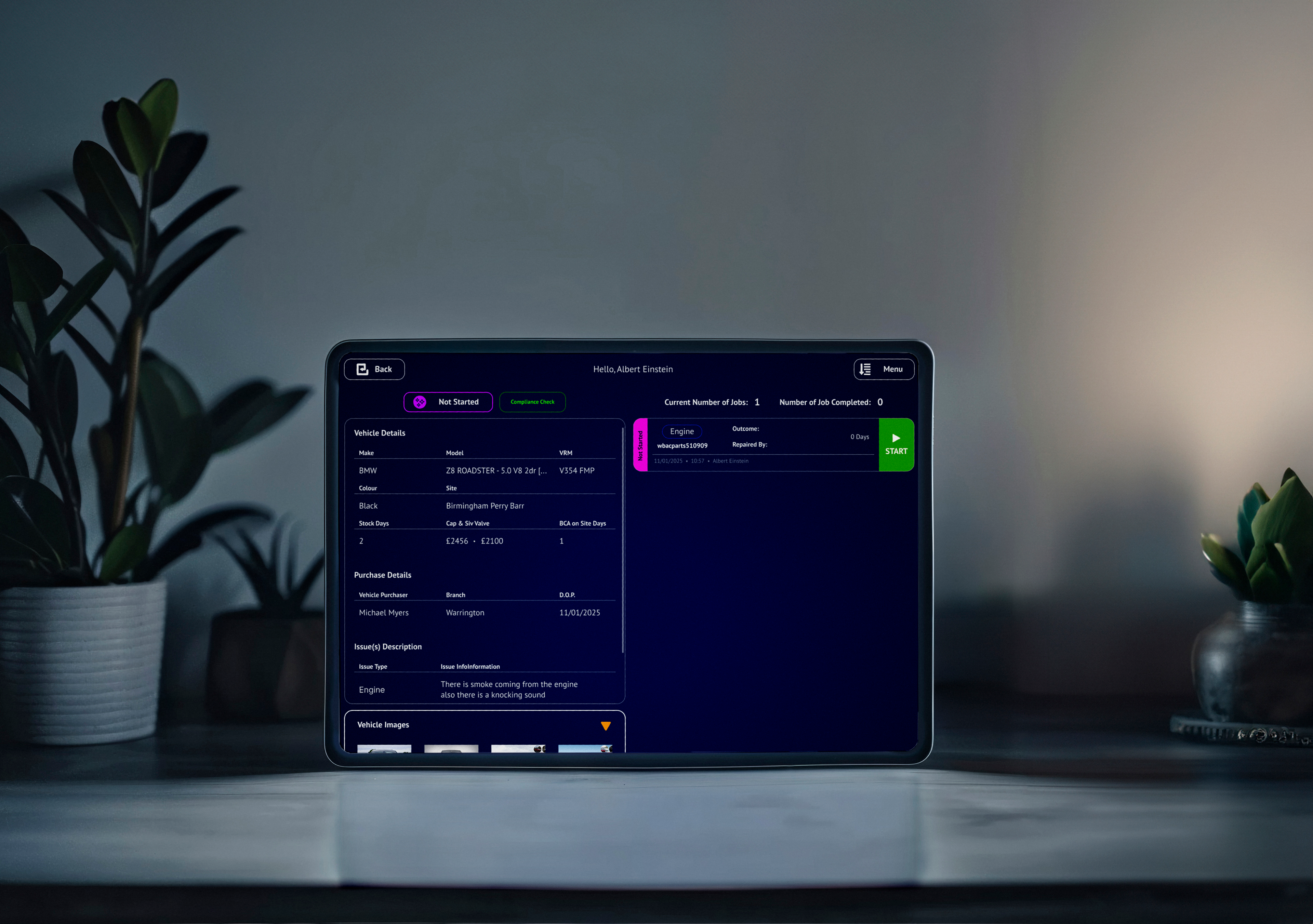 • Streamlined Workflow: We minimised the number of steps required to complete tasks, ensuring that mechanics could finish their work in five taps or less.