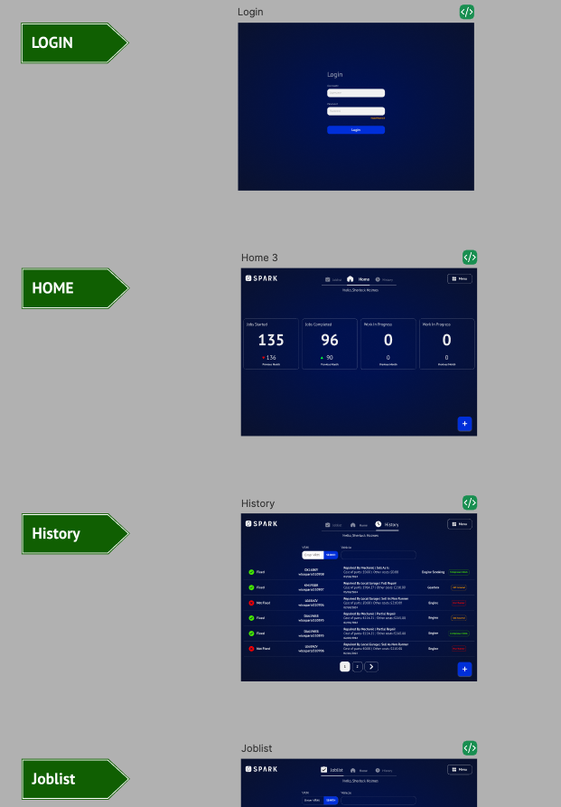 The Spark app was developed to enhance the efficiency and usability for mechanics. By incorporating a dark mode interface, streamlined workflows, and large, accessible elements, we significantly reduced complexity and improved overall user experience. The app integrates seamlessly with existing systems, ensuring a cohesive workflow.